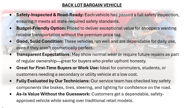 As-Is Value Without the Guesswork: Customers get a dependable, safety-approved vehicle while saving over traditional retail models.