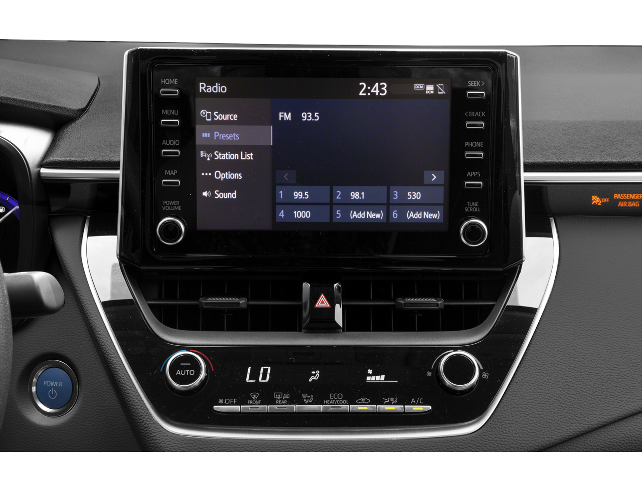 - Radio: Audio AM/FM -inc: 6 speakers, 8" touch-screen, Siri Eyes Free, Apple CarPlay compatible, USB media port, 1 USB charge port, hands-free phone capability, advanced voice recognition and music streaming via Bluetooth® wireless technology, Scout GPS Link compatible w/up to 3-year trial, Toyota Connected Services - Safety Connect w/3-year trial and Wi-Fi Connect powered by Verizon w/up to 2 GB within 6-month trial