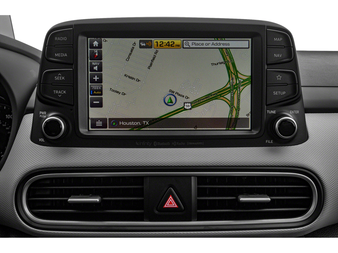 - Radio: AM/FM/MP3/HD Radio/SiriusXM Audio System -inc: 315 Watts, Infinity premium audio w/8 speakers including subwoofer, external amplifier, Blue Link connected car system, Clari-Fi music restoration technology, wireless device charging, Traffic flow and incident data free via HD Radio (HERE), VR, 8" LCD touchscreen display w/navigation, Android Auto, Apple CarPlay, Siri and Google Now support, dual front USB outlets/ auxiliary input jack and Bluetooth®