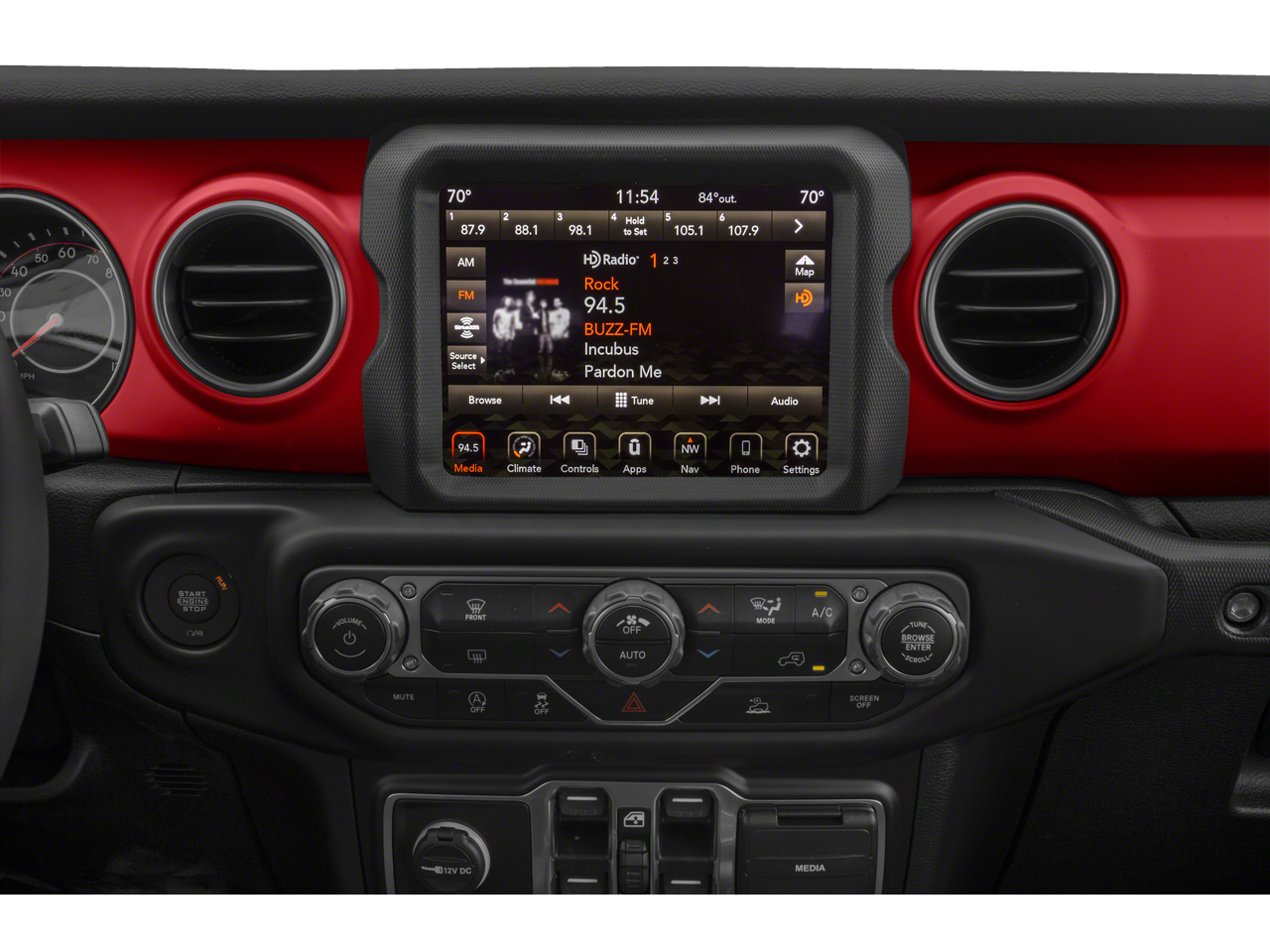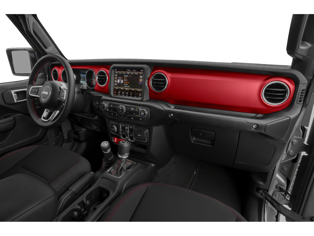 Step inside and you'll be greeted by a wealth of premium features, including the 8.4-inch Uconnect 4C NAV touchscreen display, Alpine premium audio system, heated steering wheel, and heated front seats. The Trail Rail Management System and lockable rear underseat storage provide ample versatility and organization for all your gear.